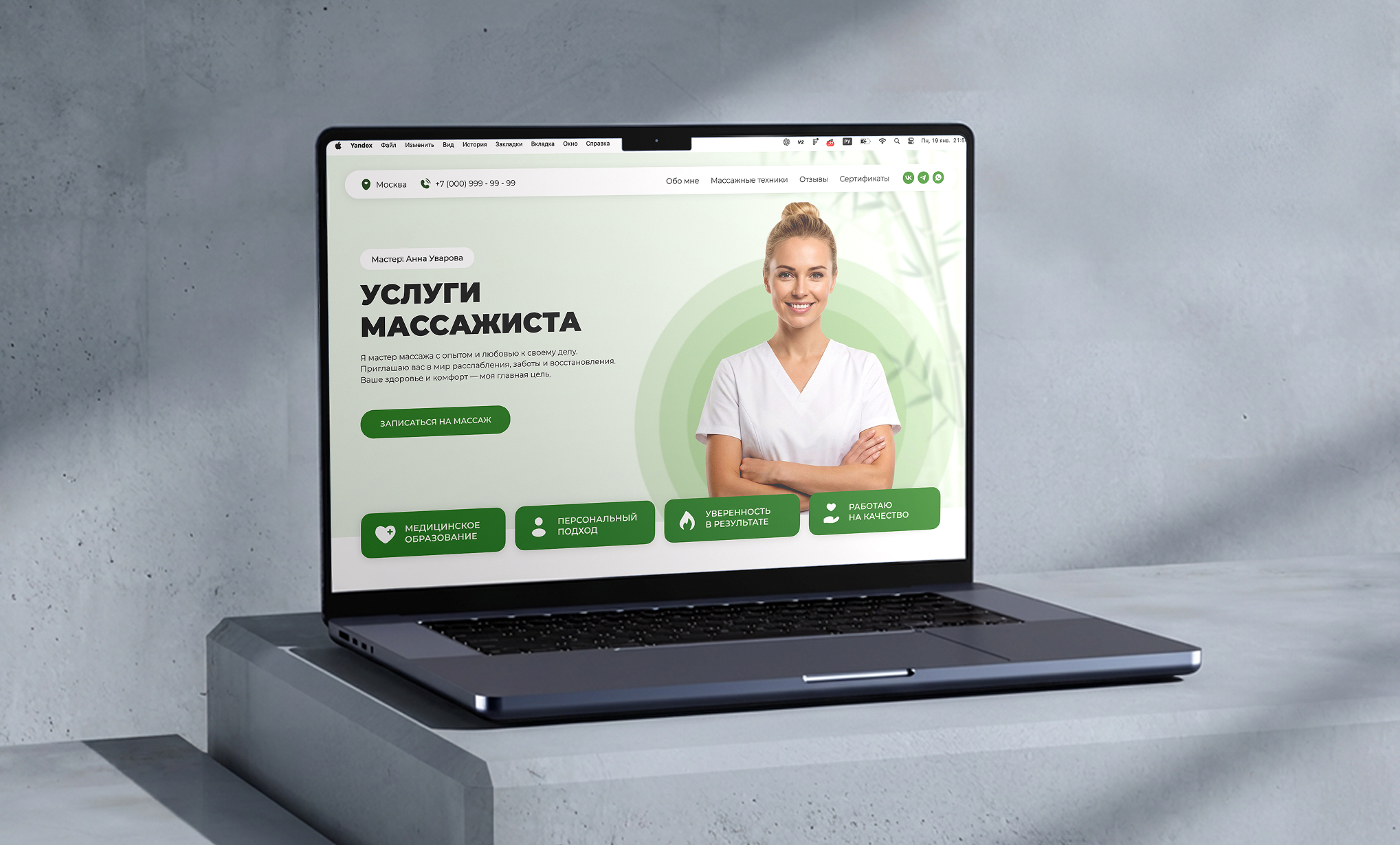 5 000 ₽Решение подходит для сайтов под услуги в сфере бьюти и здоровья: массаж, лазерная эпиляция, косметология, эстетические процедуры и частная практика. Лендинг сделан на WordPress, быстро загружается, адаптирован под мобильные устройства и компьютеры, удобен для клиентов и прост в администрировании.