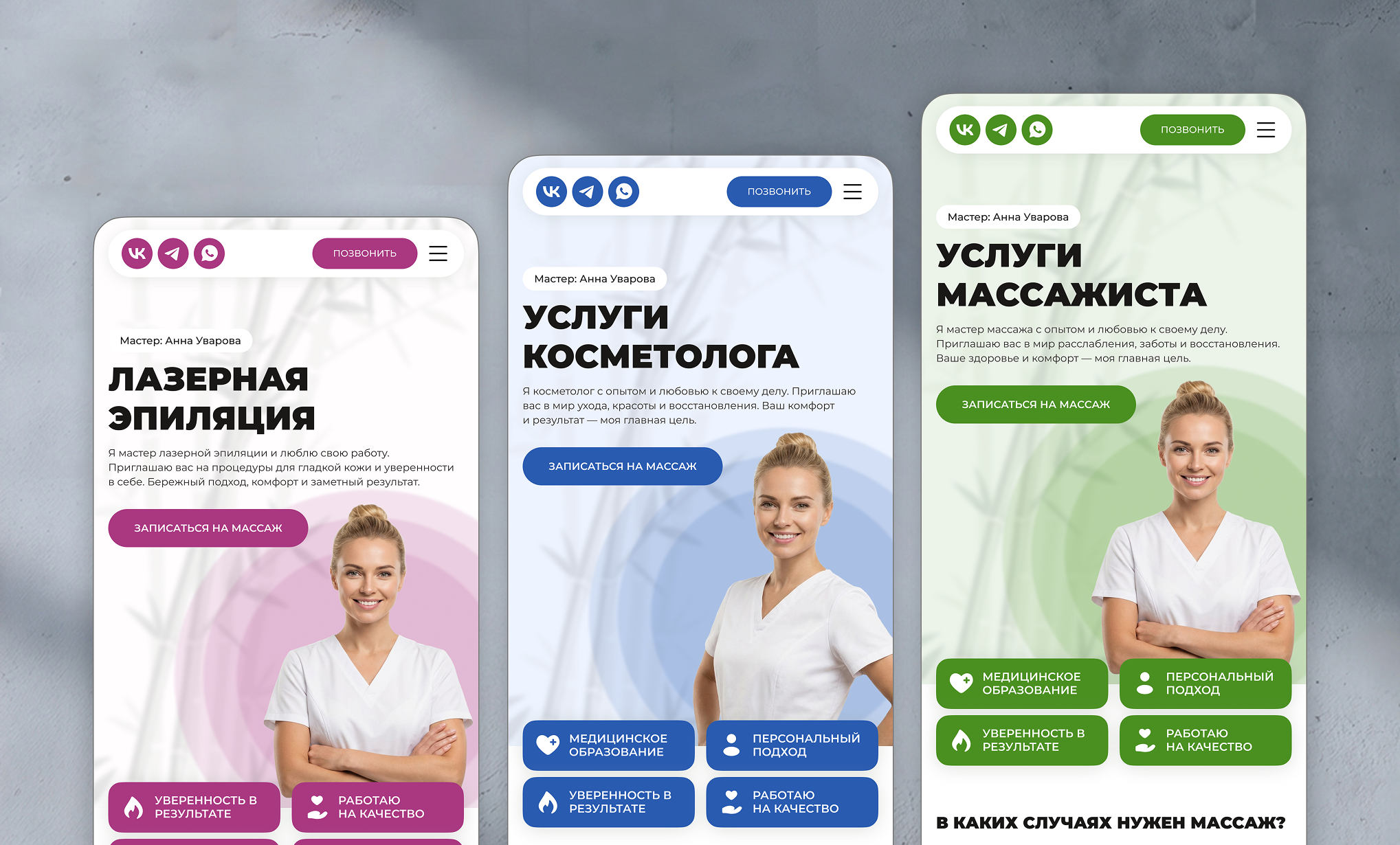 Лендинг под услуги бьюти и здоровья, для частных специалистов и небольших студий